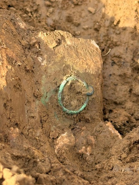 „Das Hauptkampfgebiet lag etwa drei Kilometer östlich bei Mehrhoog. Die Fundstelle könnte die Fläche eines kleinen Scharmützels oder aber auch der Friedhof eines Feldlazarettes gewesen sein“, führt Matthies weiter aus, der mindestens noch 10 weitere Bestattungen im direkten Umfeld erwartet. Allerdings gibt der jüngste Fund eines Kindergrabes neue Rätsel auf. Ein Bronzering und zwei stark verschliffene Münzen sind noch nicht datiert.