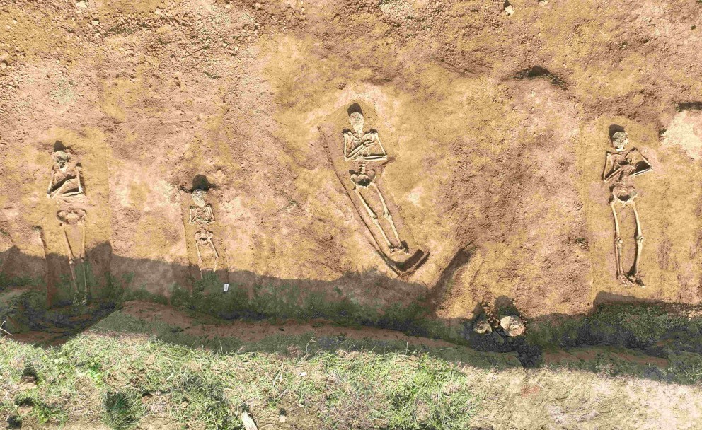 Im Rahmen der archäologischen Baubegleitung wurden nun in der Nähe des Rheins bei Rees 15 Skelette gefunden. Die menschlichen Überreste stammen von Männern im Alter zwischen 20 und 30 Jahren und lagen in flachen Grabgruben. Die meisten Männer waren sorgfältig bestattet. Es handelt sich um einen Zufallsfund, da der Platz im Vorfeld nicht bekannt und somit auch nicht Teil der archäologischen Voruntersuchungen war.