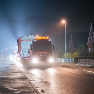 Vom 6. bis 9. Oktober transportiert der Übertragungsnetzbetreiber Amprion drei Transformatoren zur Konverterbaustelle in Emden-Petkum. Die Schwertransporte vom Emder Hafen finden nachts statt, um den Verkehr möglichst wenig zu beeinträchtigen.