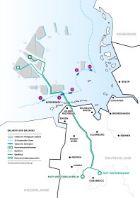 Die Landtrasse der beiden Projekte ist in insgesamt 5 Genehmigungsabschnitte eingeteilt. Der nördlichste Abschnitt ist der Planfeststellungsabschnitt 1 (PFA1) und reicht vom Anlandungspunkt in Hilgenriedersiel bis Bösel. Von Bösel bis Rieste reicht der PFA2. An dieser Stelle trennen sich die bis dahin parallel verlaufenden Projekte. Der PFA3 gehört zu BalWin2 und zweigt ab Rieste in westliche Richtung ab bis zur Landesgrenze NRW im Raum Voltlage. Daran schließt sich der nur in NRW verlaufende PFA5 an, der von der Landesgrenze bis zum Netzverknüpfungspunkt in Ibbenbüren reicht. BalWin1 verläfut ab Rieste östlich Richtung Konverter in Bohmte im PFA4. Die Einreichung der Antragsunterlagen für die Planfeststellungsverfrahren sind in vollem Gange. Die Materialien dazu finden sie etwas weiter unten.