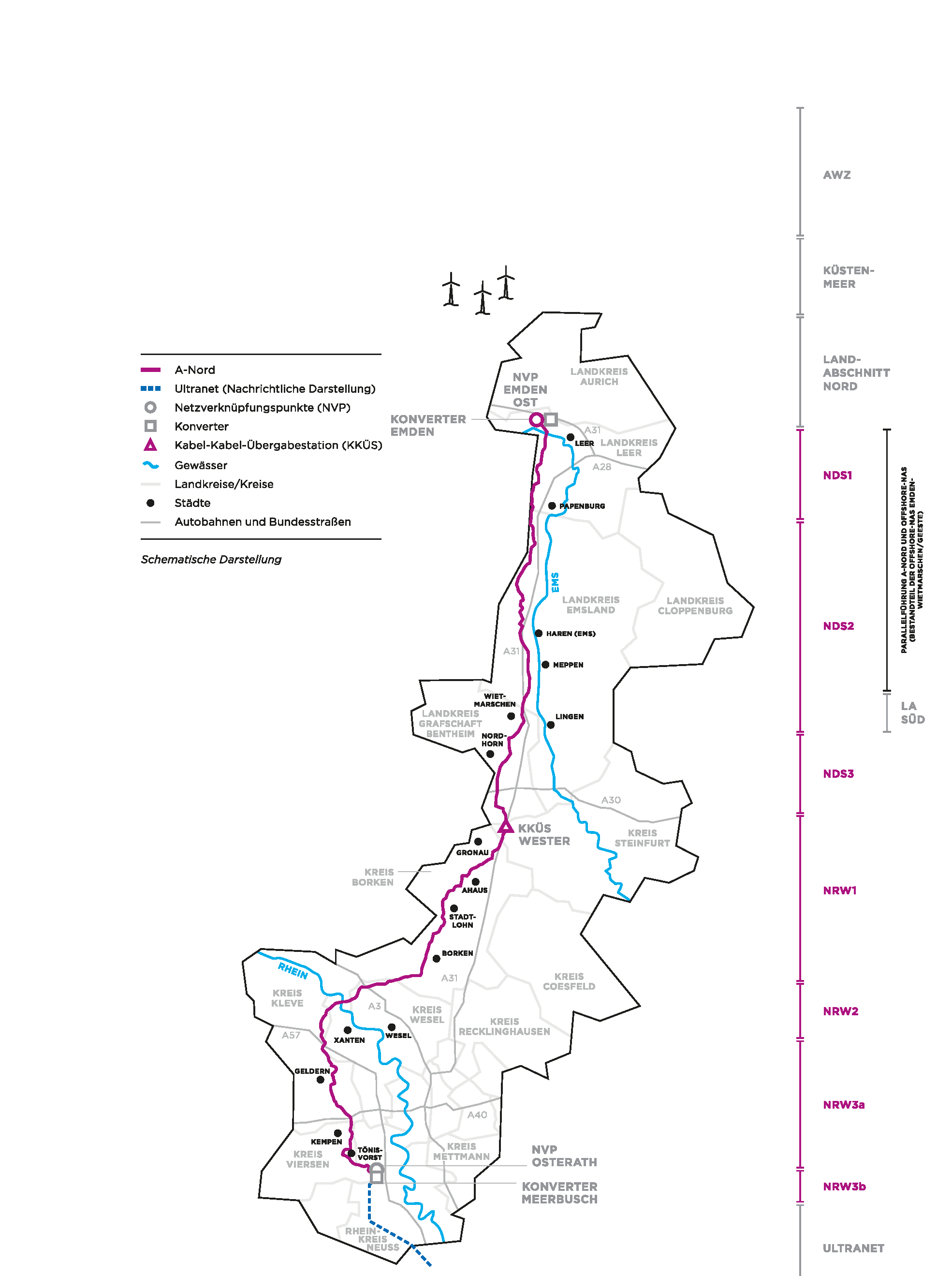 Weitere Informationen zum Projekt und die Karten zu den Trassenkorridoren finden Sie unter www.a-nord.net.