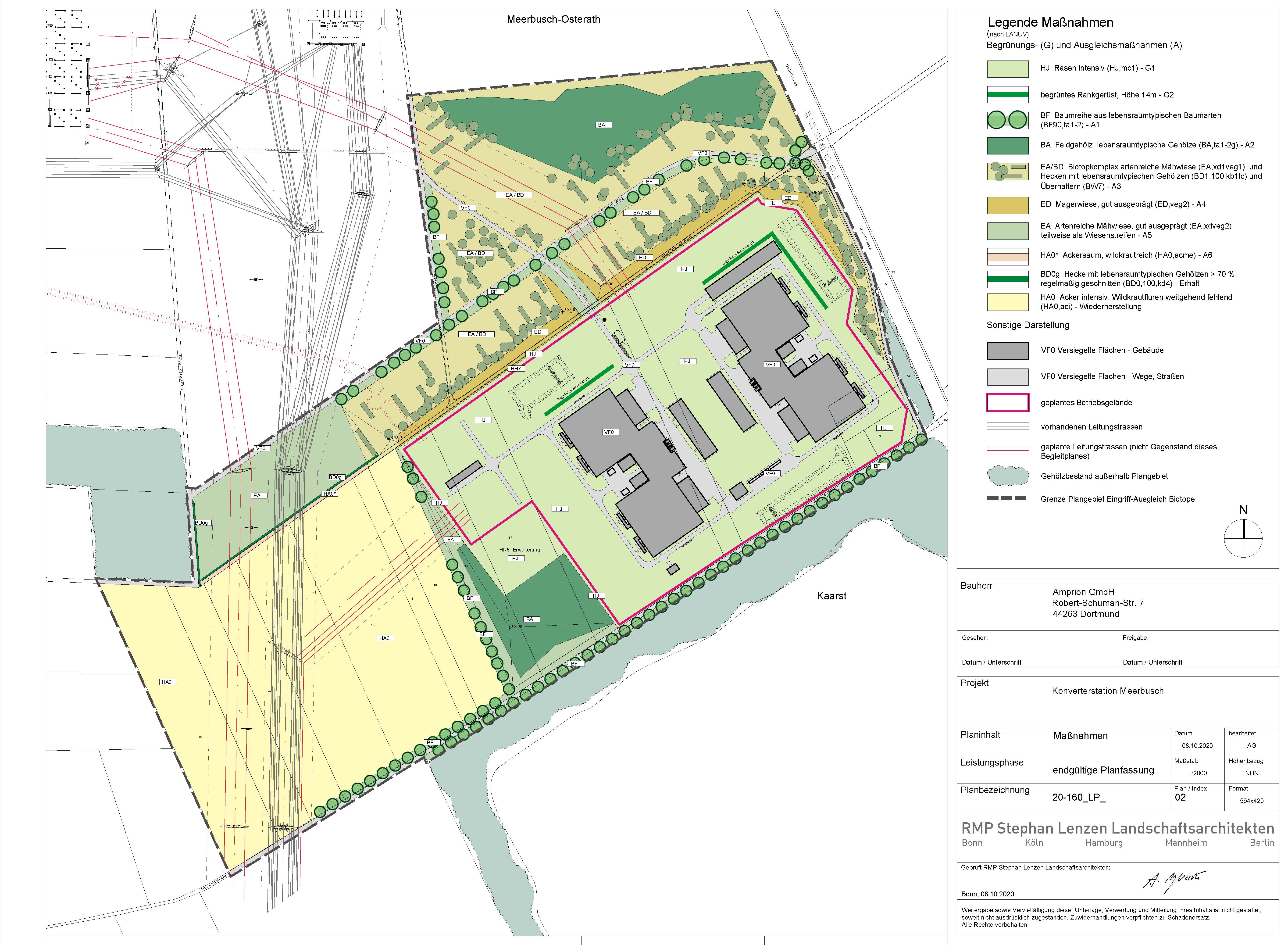 Grundlage des Begrünungskonzepts ist der sogenannte Landschaftspflegerische Begleitplan für die Konverteranlage. Er beschreibt die Auswirkungen des Bauvorhabens auf Natur und Landschaft. Neben der Begrünung sind Maßnahmen für den Artenschutz sowie den Schutz von Boden und Wasser vorgesehen. Eine ökologische Baubegleitung wird später sicherstellen, dass alle Maßnahmen ordnungsgemäß umgesetzt werden. Dies erfolgt bereits begleitend zur Baufeldräumung und in der Bauphase der Konverteranlage.
