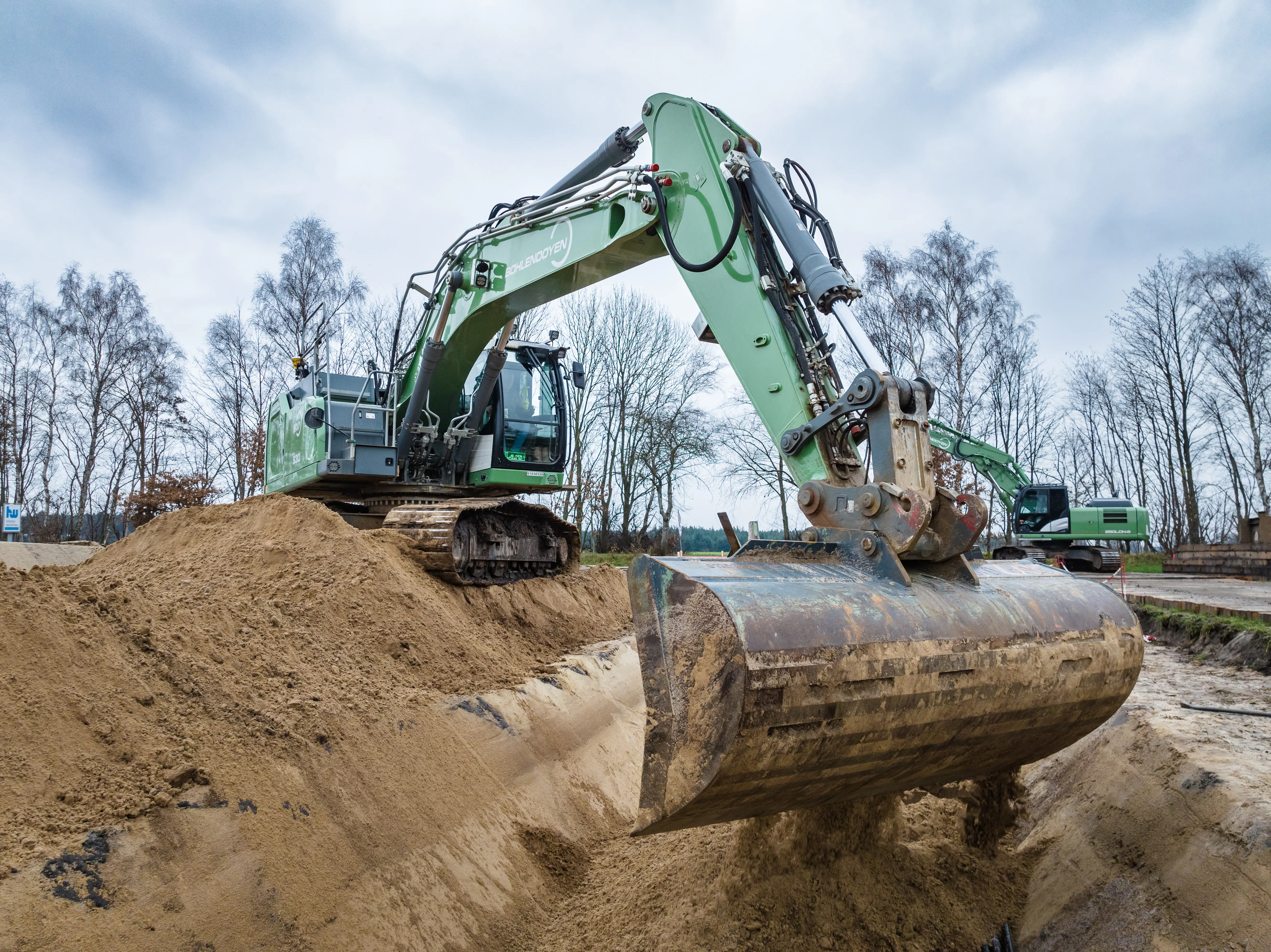 Es folgt die Vorbereitung der Konverterfläche, indem Amprion bis September mehrere Tonnen Sand aufschütten lässt. Fast zwei Meter soll die Schicht später hoch sein. In der Zwischenzeit soll auch der Hof weichen, der derzeit noch auf der Fläche westlich des Eiskewegs steht. Ebenfalls in diesem Jahr sollen bereits die erforderlichen Regenrückhaltebecken für die Konverterstation gebaut werden. Direkt nebenan wird östlich des Eiskewegs eine sogenannte Baustelleneinrichtungsfläche entstehen. Baucontainer, Parkplätze und Bodenlager sollen dort ihren Platz finden.