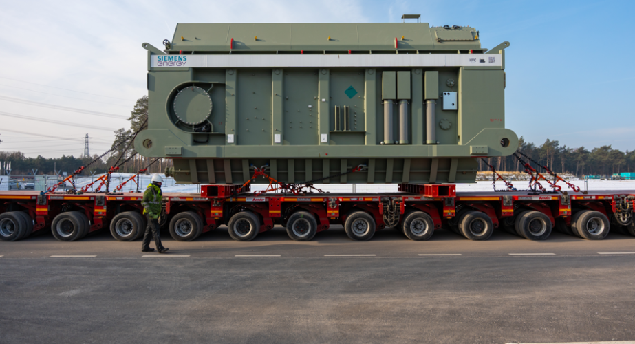 Die Transformatoren werden am nahegelegenen Ems-Anleger der Benteler Steel/Tube GmbH auf einen Schwertransporter umgeladen. Sie sind jeweils circa 10 Meter lang, über 4,7 Meter hoch und knapp 4 Meter breit. Ihr Transportgewicht von 240 Tonnen verteilt sich auf ein selbstfahrendes Modulfahrzeug bestehend aus einem Powermodul und vier 6- bzw. 4-achsigen Transportmodulen.