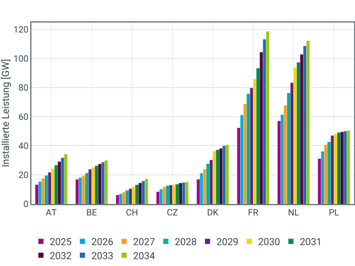 Abb. 15.1: Entwicklung der erneuerbaren Erzeugungsleistung der deutschen Anrainerstaaten.