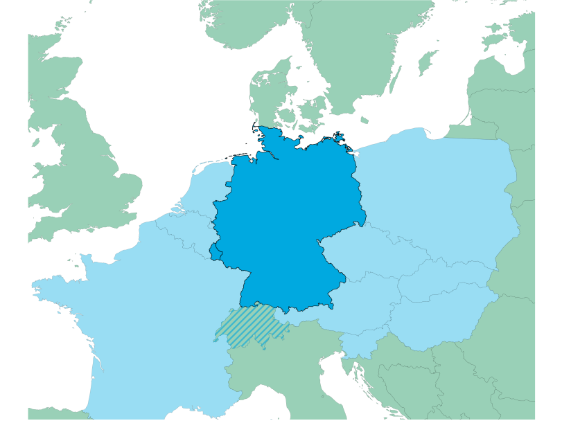 Abb. 16: Fokusregionen der lastflussbasierten Marktkopplung (blau).