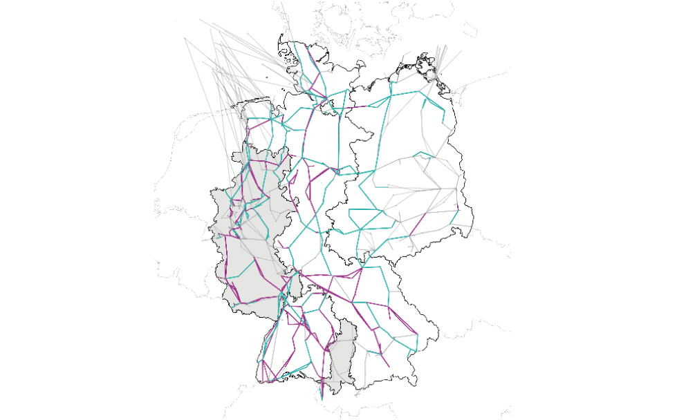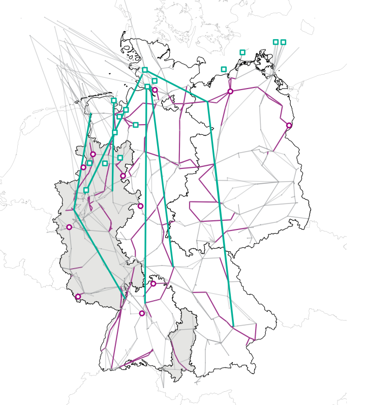 Die Annahmen zum Netzausbau im Ausland sind im Wesentlichen dem Ten Year Network Development Plan (TYNDP) 2024 [8] entnommen. Darin sind für die Inbetriebnahmezeitpunkte üblicherweise Jahresangaben hinterlegt. Daher ist das ausländische Netz innerhalb eines Betrachtungsjahres konstant. Ausgenommen sind Netzausbaumaßnahmen, die im Zusammenhang mit Kuppelleitungen von Deutschland ins benachbarte Ausland stehen. Hier liegen oftmals genauere Angaben zum Inbetriebnahmezeitpunkt durch den deutschen Übertragungsnetzbetreiber vor.