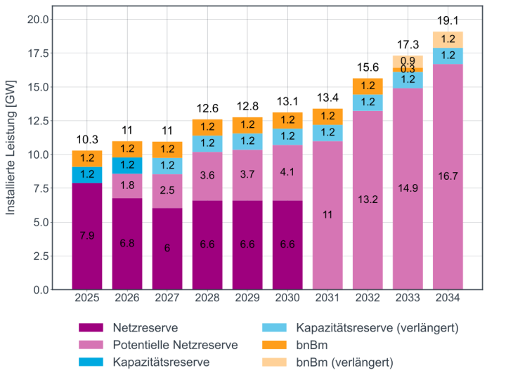 Kraftwerke der Kapazitätsreserve dienen primär dem Ausgleich von Leistungsbilanzdefiziten, können bei Bedarf aber auch für den Redispatch verwendet werden. Sie werden gleichrangig zu den Netzreserve-Kraftwerken zur Engpassbehebung eingesetzt. Der aktuelle Erbringungszeitraum der Kapazitätsreserve läuft zum 30. September 2026 aus. Ob es eine Verlängerung geben wird, ist zum Zeitpunkt der Studienerstellung unklar. Die Kraftwerke werden daher ab 2027 als potenzielle Netzreserve betrachtet.