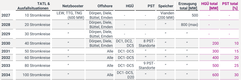 Um den Netzausbau abzubilden, werden die Inbetriebnahmezeitpunkte unter konservativen, realistischen Annahmen getroffen.