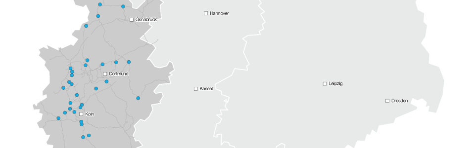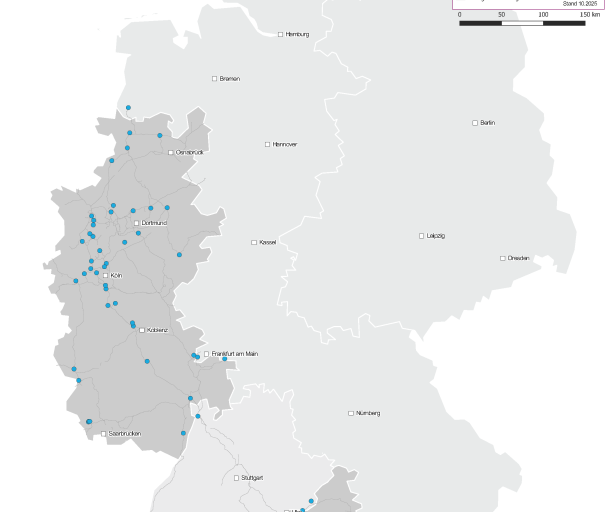 Zusätzlich wird mittels einer Karte veranschaulicht, an welchen Schaltanlagen Amprion für Kundenprojekte bereits tätig ist. Darüber hinaus wird im Rahmen einer Netzanschlusskarte visualisiert, an welchen Schaltanlagen ein Netzanschluss an das Übertragungsnetz gemäß Ersteinschätzung im Amprion-Netzgebiet möglich ist. Die Netzanschlusskarte dient der unverbindlichen Orientierung und gibt eine erste Indikation zur Verfügbarkeit von Schaltfeldern im Netzgebiet von Amprion.